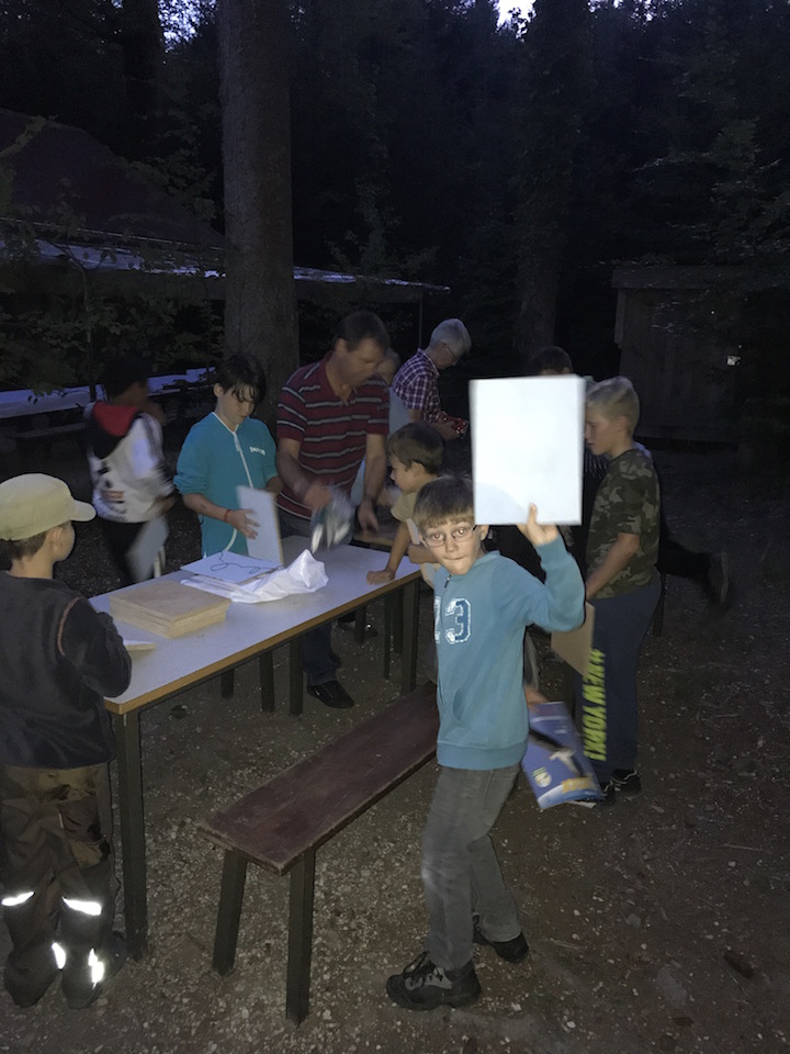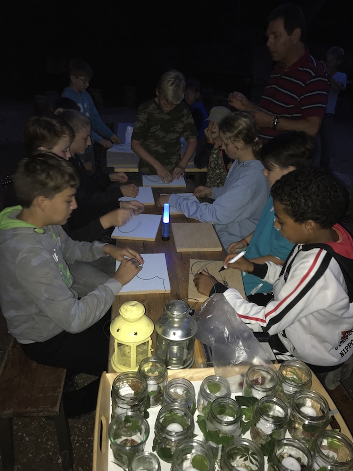 Nach dem gemeinsamen Nachtessen der 11 Wendehälse ihren Eltern und Geschwistern bastelten die Wendehälse Teelichter. Danach hatten Sie die Aufgabe, mit einer speziellen Schnur ein Bild oder etwas Kreatives auf einem Brett zu gestalten. Später gings auf zu einem spannenden Nachtspaziergang. Bei ihrer Rückkehr war das Voguhüsli mit den gebastelten Lichtern beleuchtet. Als Höhepunkt durften die Kinder nun ihre Werke entzünden. Und schon war es an der Zeit, in die Schlafsäcke zu schlüpfen und zu schlafen.