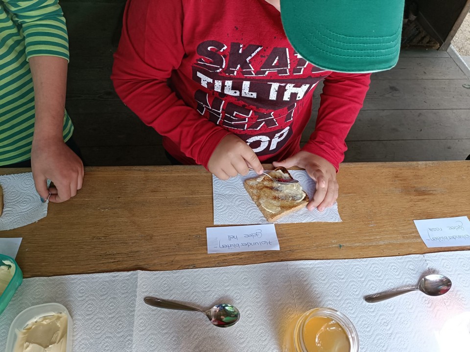 Am Samstag, 11. Juni 2022 trafen wir uns beim Waldhaus und bereiteten zusammen ein feines Znüni aus Köstlichkeiten zu, welche die Natur für uns bereithält. Spiel und Spass durfte auch nicht zu kurz kommen. Wer Lust hatte, durfte auch noch eine kleine selbstgemachte Köstlichkeit mit nach Hause nehmen. Es war lecker !!!!