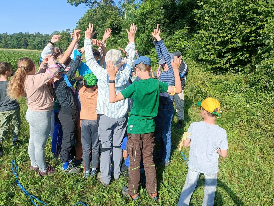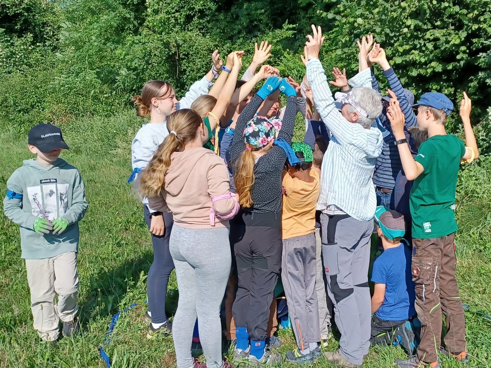 Das drüsige Springkraut wurde auf weiten Strecken ausgerissen und auf grossen Haufen aufgeschichtet. Es entstand viel Platz für unsere einheimische Pflanzenwelt! Zur Abkühlung gab es nach der tollen Ausreissaktion einen Sprung ins Wilerbedli. Zäme fägts haut eifach!