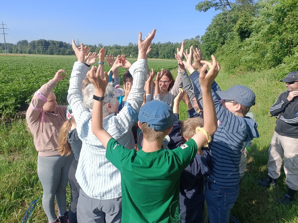 Das drüsige Springkraut wurde auf weiten Strecken ausgerissen und auf grossen Haufen aufgeschichtet. Es entstand viel Platz für unsere einheimische Pflanzenwelt! Zur Abkühlung gab es nach der tollen Ausreissaktion einen Sprung ins Wilerbedli. Zäme fägts haut eifach!