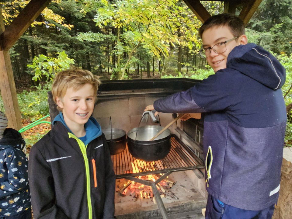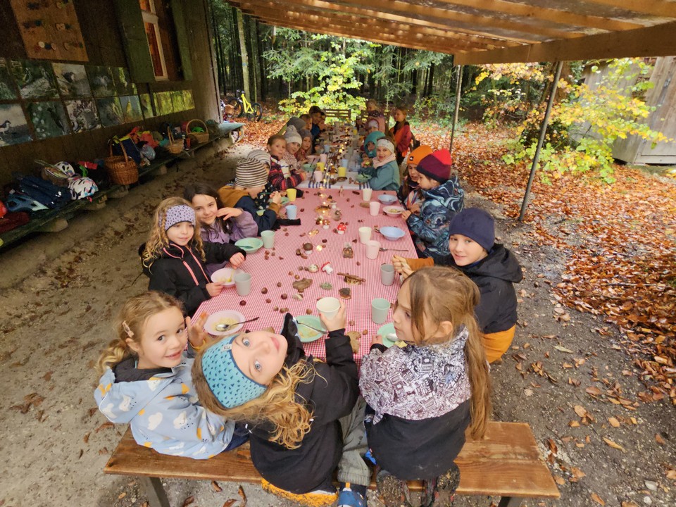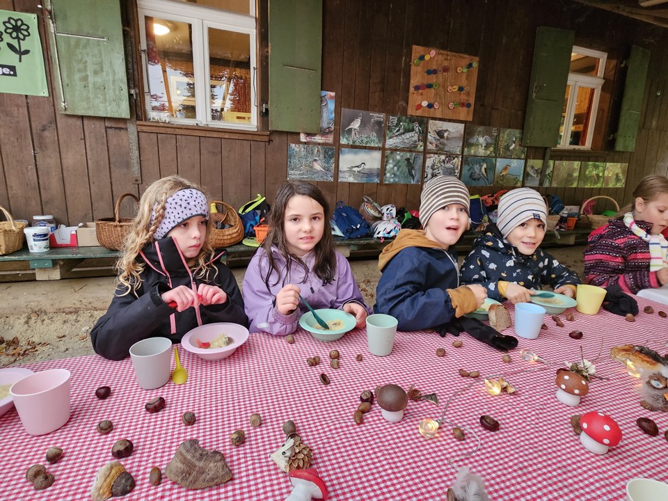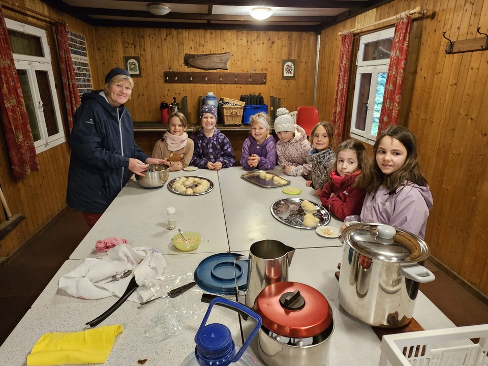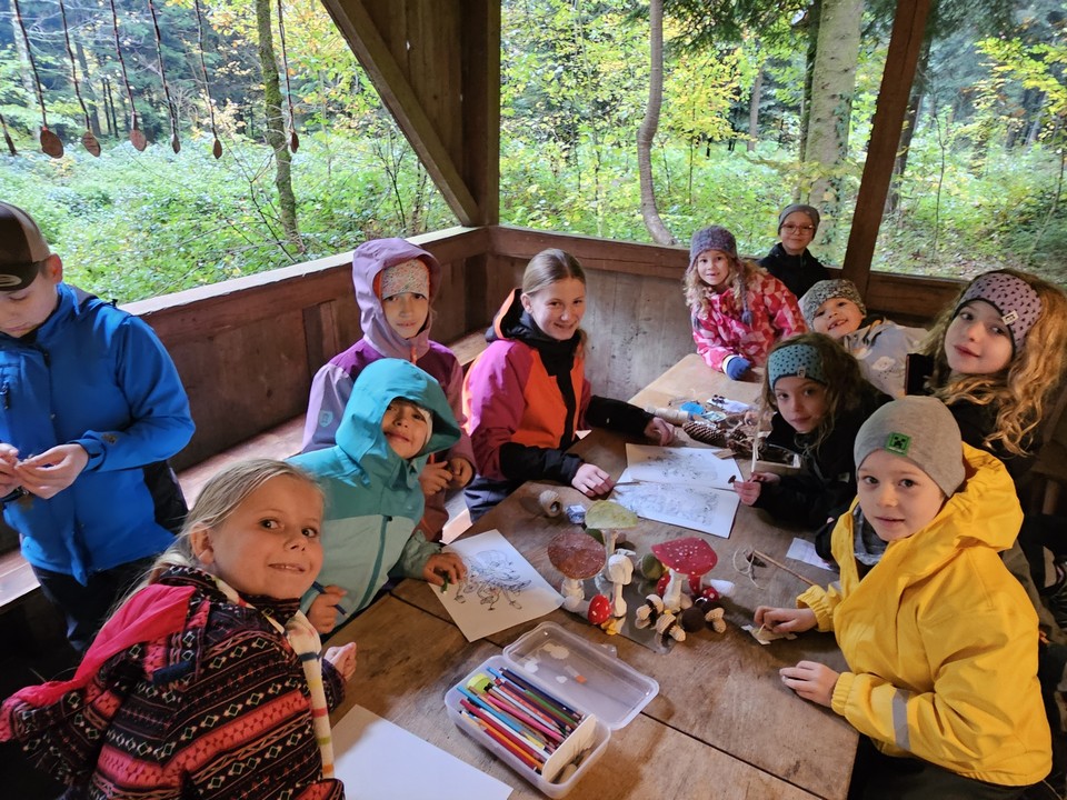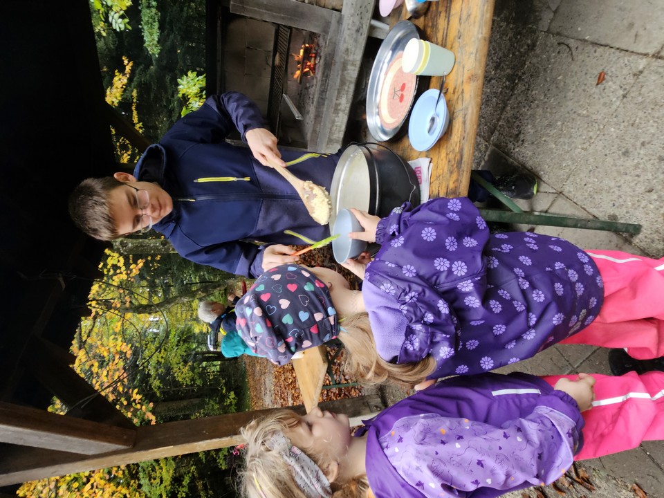 Trotz nasskaltem Wetter wurde gelacht, gesammelt und entdeckt. Danach zauberten alle gemeinsam ein feines Pilzrisotto, ein süsses Igeli-Dessert und leckeres Dipgemüse auf den Tisch.