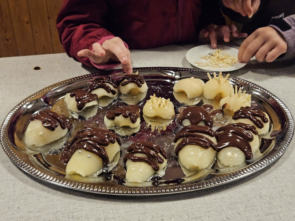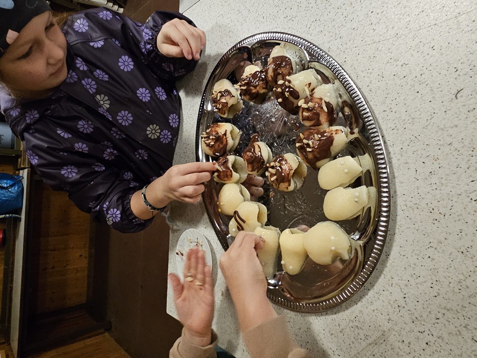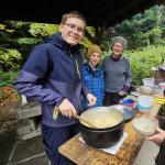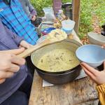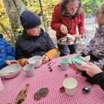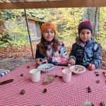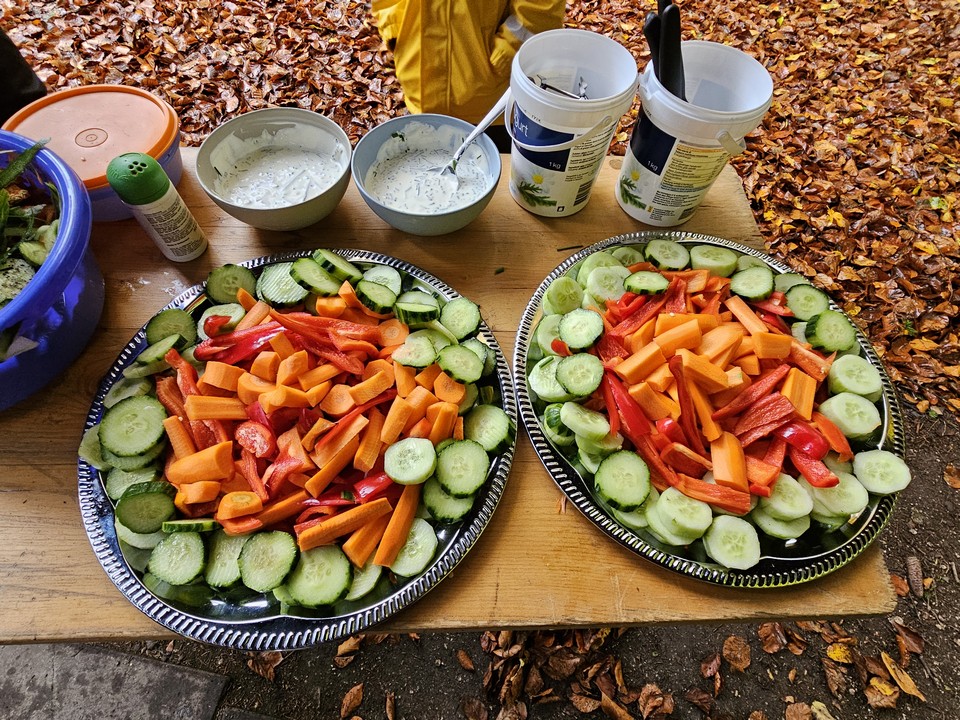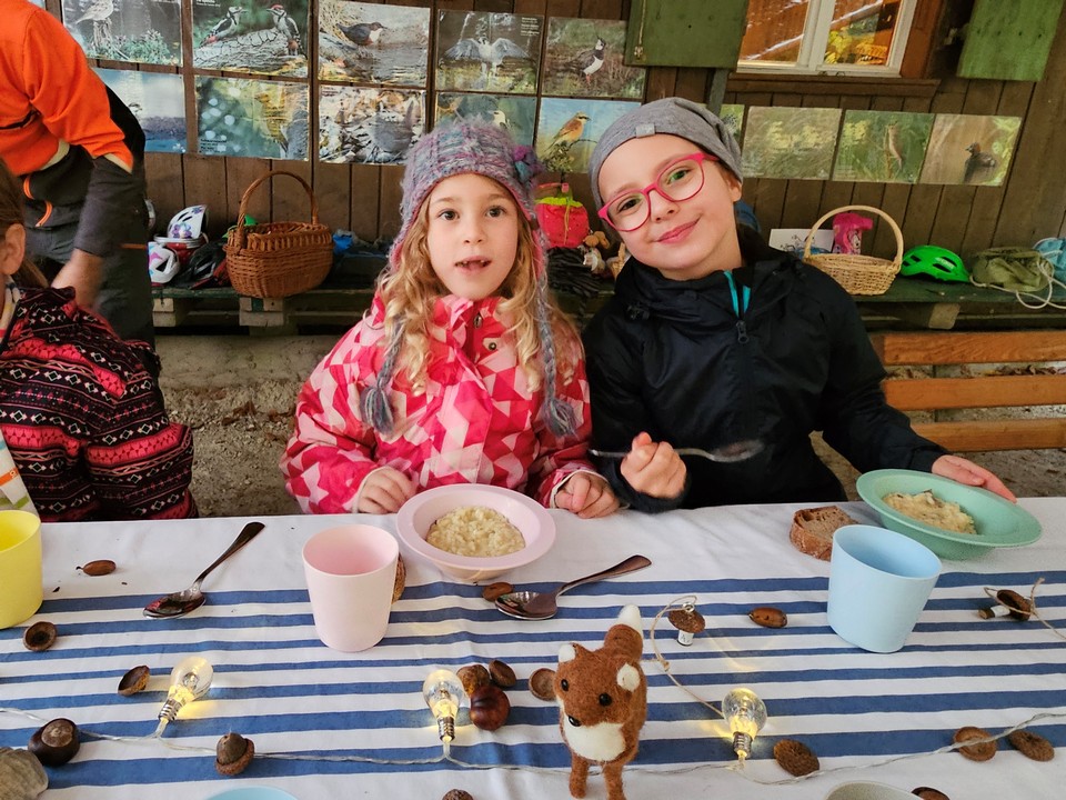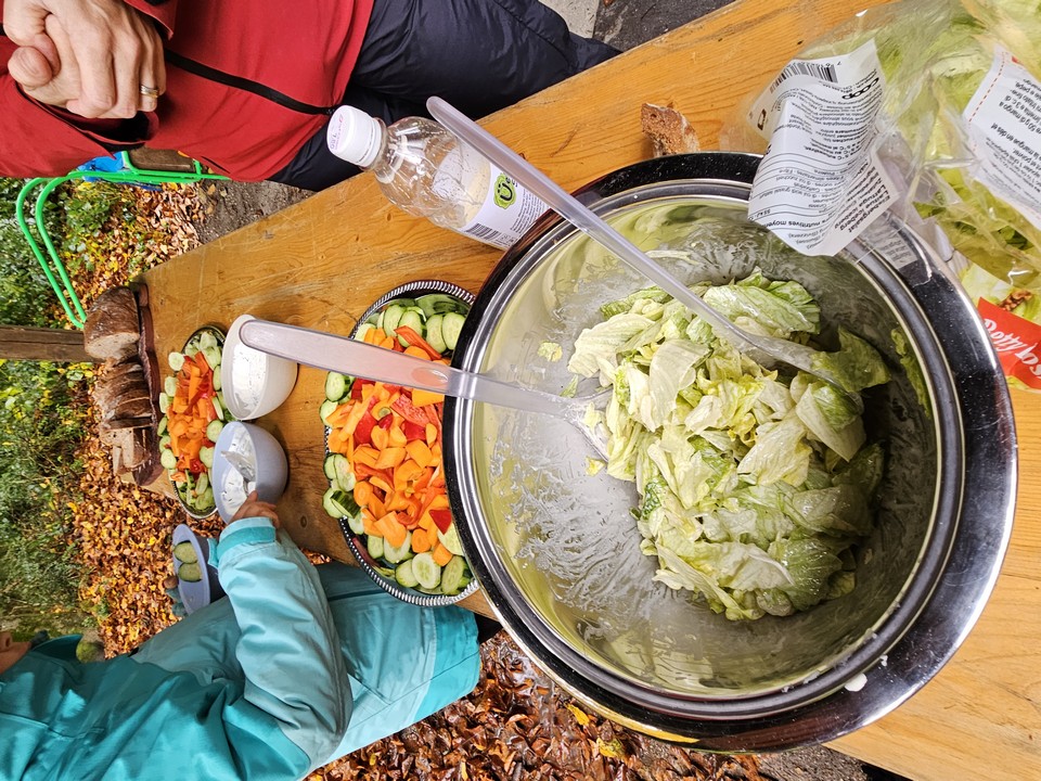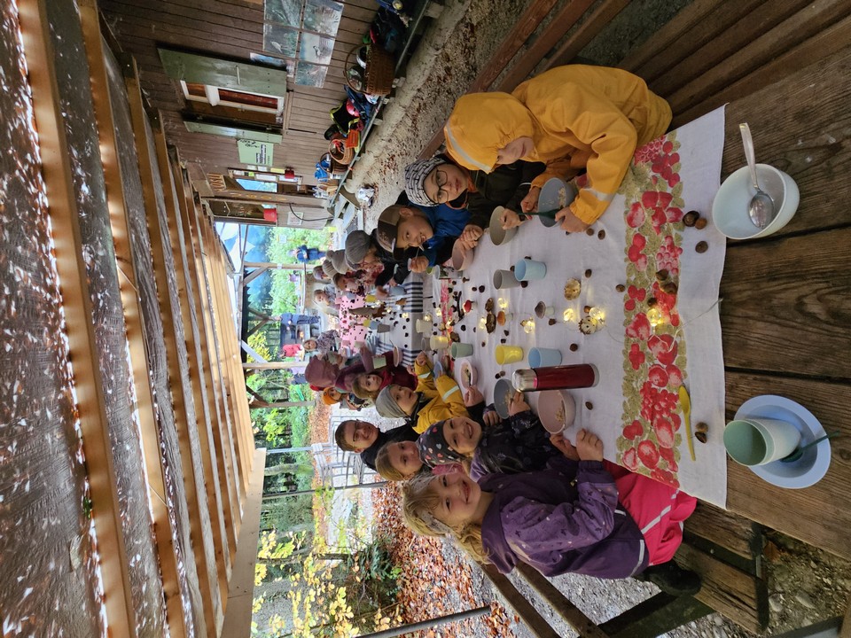 Trotz nasskaltem Wetter wurde gelacht, gesammelt und entdeckt. Danach zauberten alle gemeinsam ein feines Pilzrisotto, ein süsses Igeli-Dessert und leckeres Dipgemüse auf den Tisch.