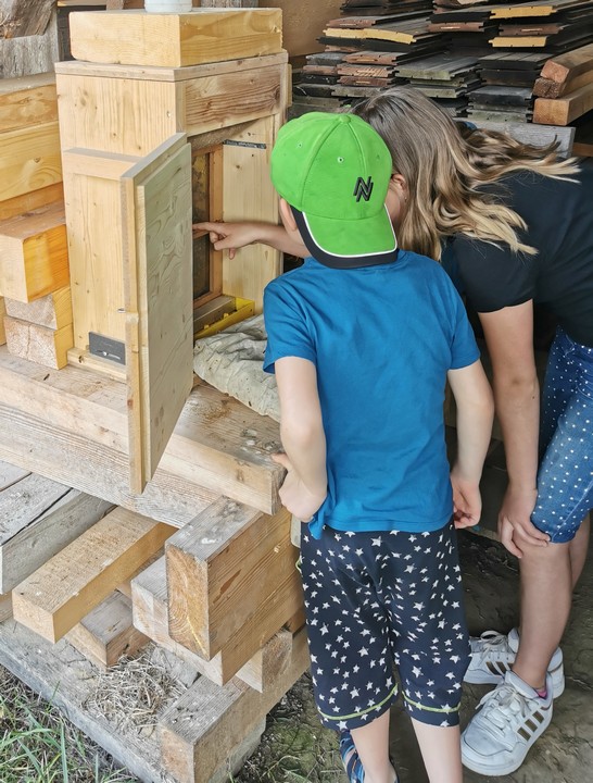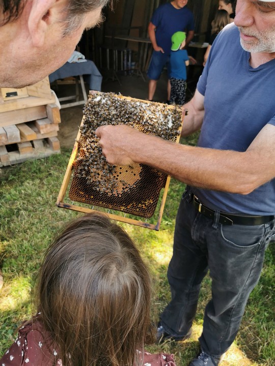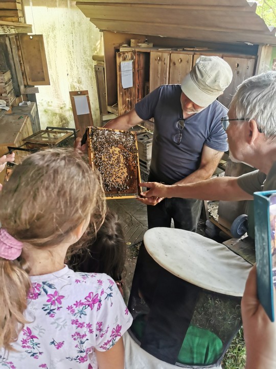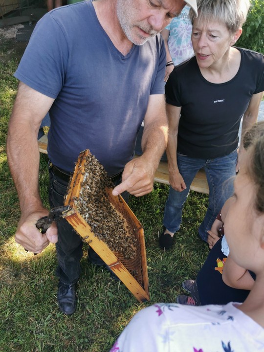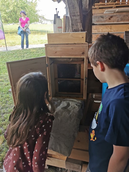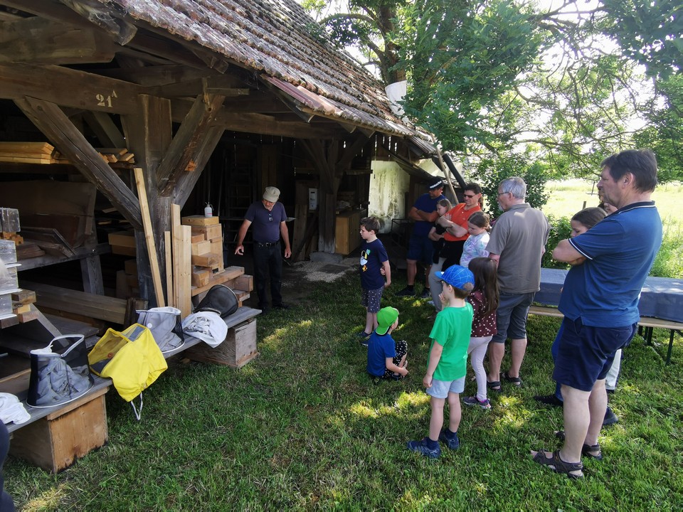 Ein interessanter Sommeranlass zog kleine und grosse Naturbegeisterte zu den Honigbienen. Imker Thomas Zotter erzählte, was es braucht, bis ein Glas Honig auf unserem Frühstückstisch steht.