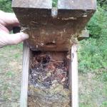 Hier ein paar Bilder wie eine Nistkastenkontrolle vonstatten geht und was bei der Reinigung alles so gefunden wird.