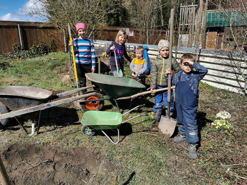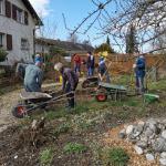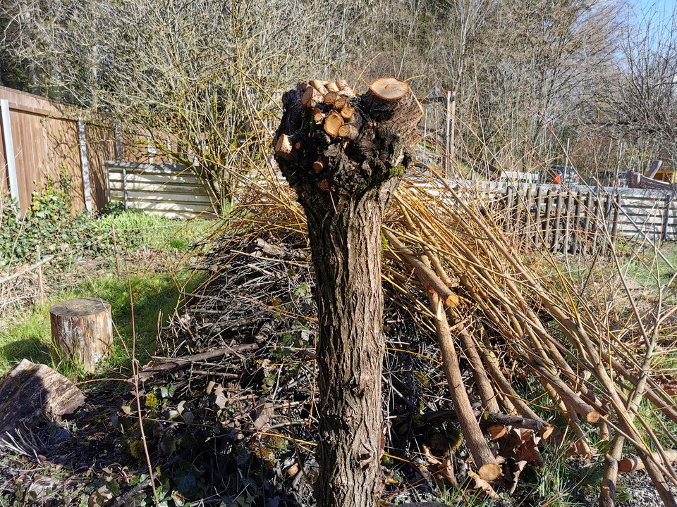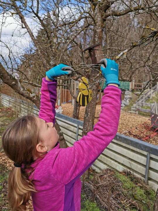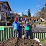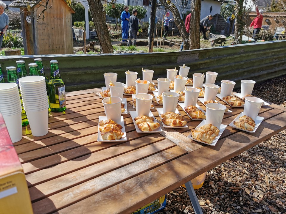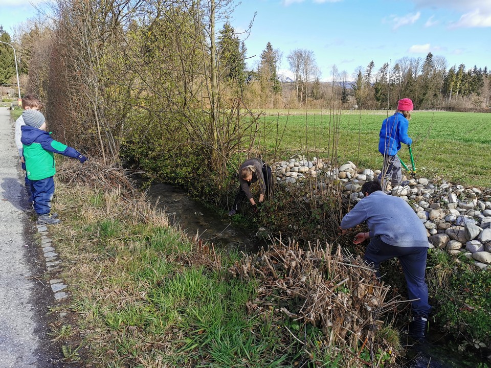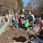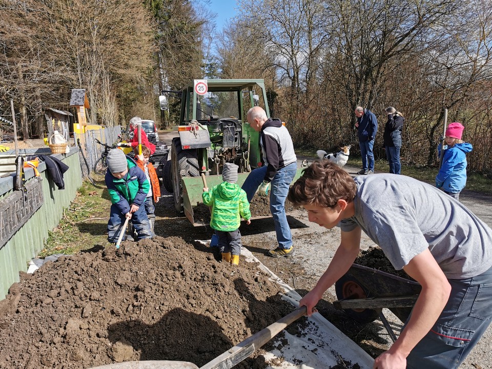 Der erste Arbeitseinsatz in diesem Jahr fand bei schönstem Wetter statt. 15 Erwachsene und 10 Kinder kümmerten sich um unseren Naturgarten, schnitten Kopfweiden, entfernten nährstoffreichen Humus für unsere Wildblumenwiese, jäteten einheimische Blütenstauden frei, schichteten Asthaufen, hängten Nisthilfen auf, die Steinlinsen beim Bach wurden freigelegt und Bussardstangen wieder eingesammelt.