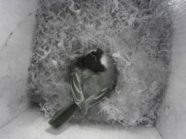 Hier in chronlogischer Reihenfolge (das jüngste Bild am Schluss) ein paar Photos wie und von wem das Nest 2014 gebaut wurde. Leider schien der Vater tot zu sein, so dass die Kohlmeisenmutter ihre Jungen alleine aufziehen und warm halten musste. Eine schwere Aufgabe!!! Aber schaut Euch die Photos an (ein Klick auf das Photo vergrössert es).