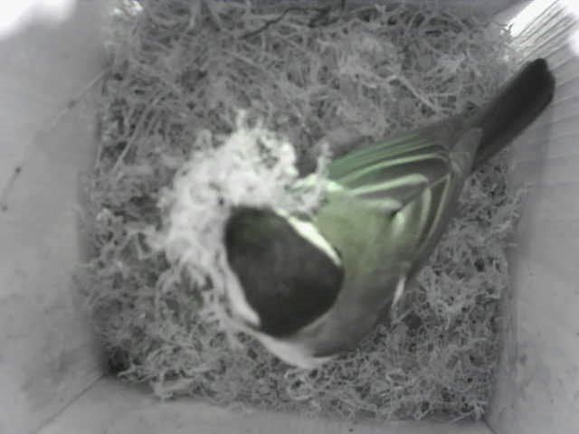 Hier in chronlogischer Reihenfolge (das jüngste Bild am Schluss) ein paar Photos wie und von wem das Nest 2014 gebaut wurde. Leider schien der Vater tot zu sein, so dass die Kohlmeisenmutter ihre Jungen alleine aufziehen und warm halten musste. Eine schwere Aufgabe!!! Aber schaut Euch die Photos an (ein Klick auf das Photo vergrössert es).
