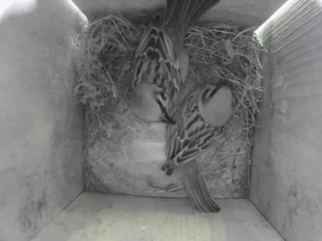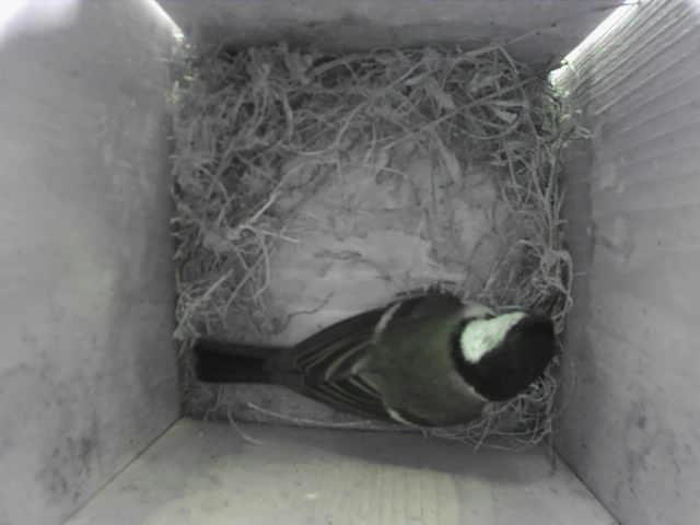 Hier in chronlogischer Reihenfolge (das jüngste Bild am Schluss) ein paar Photos wie und von wem das Nest 2014 gebaut wurde. Leider schien der Vater tot zu sein, so dass die Kohlmeisenmutter ihre Jungen alleine aufziehen und warm halten musste. Eine schwere Aufgabe!!! Aber schaut Euch die Photos an (ein Klick auf das Photo vergrössert es).