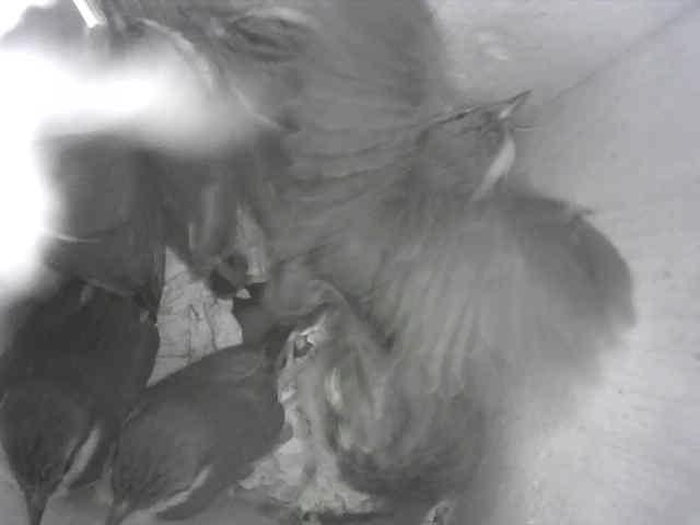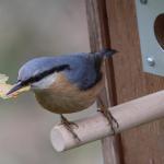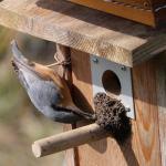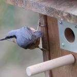 Hier ein Bild des Kleiberpaares vor dem Vogelhaus: